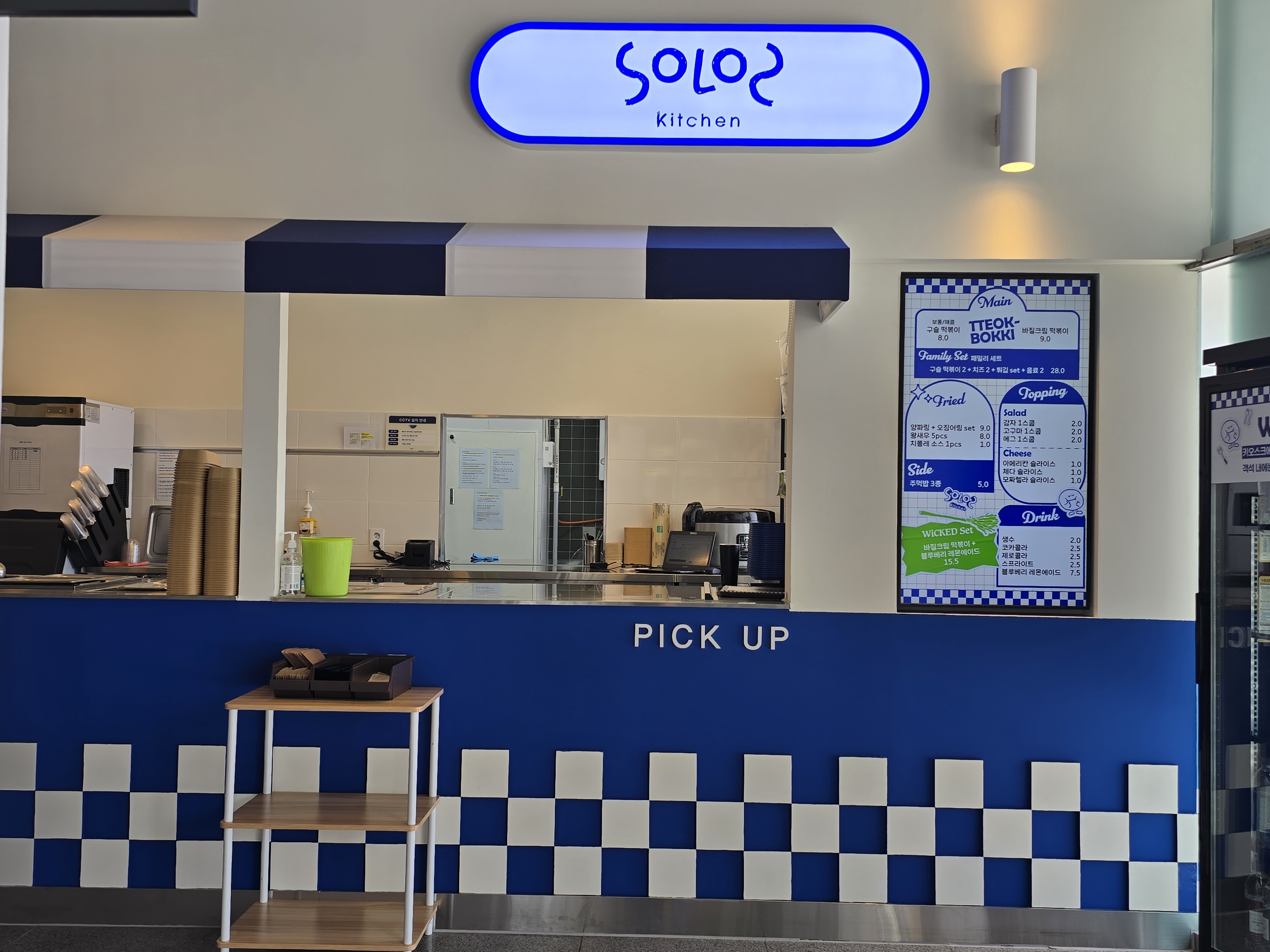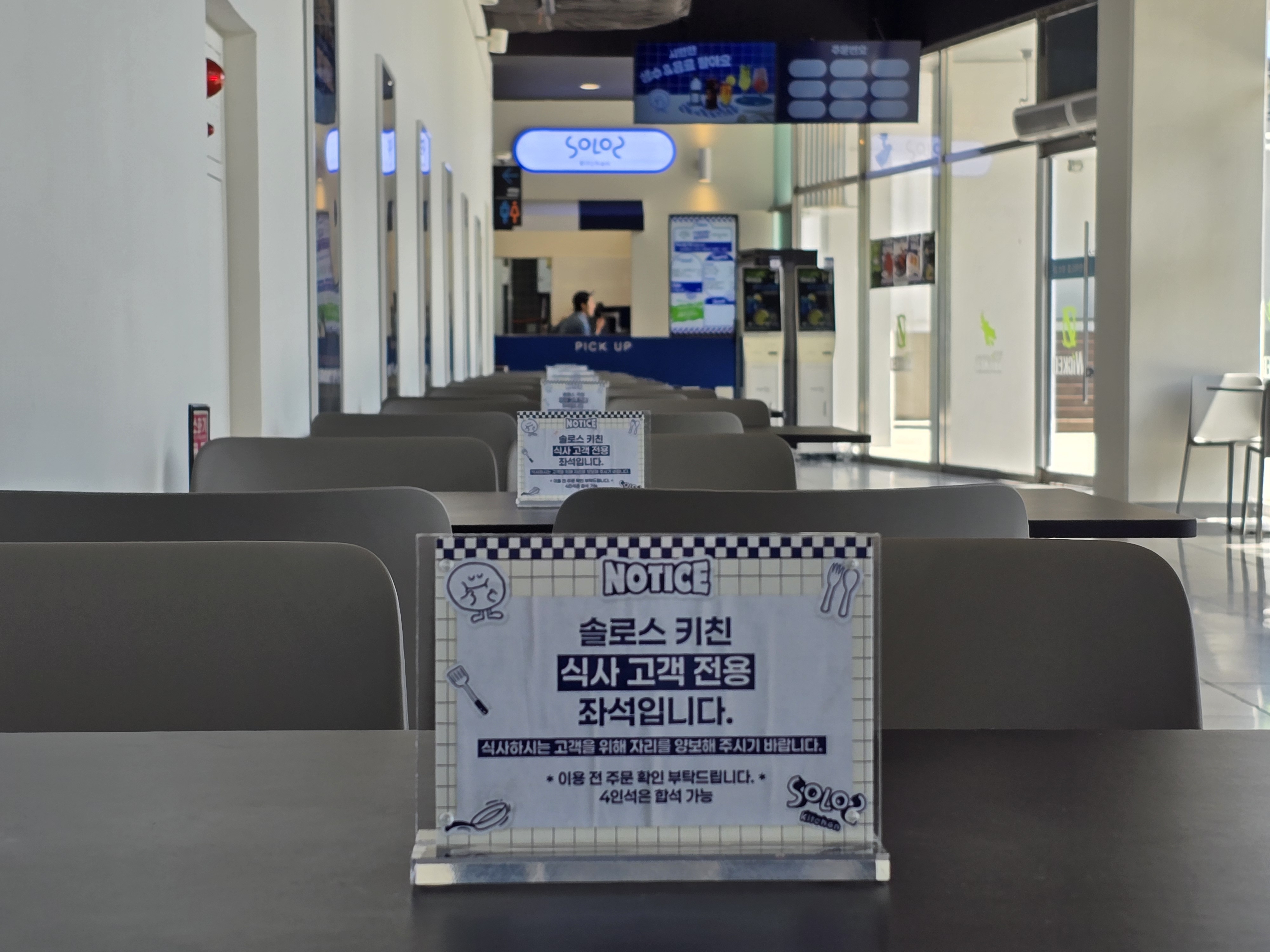 1충 로비에 테이블이 있는 것 같지만 솔로스키친 테이블은 식사 고객 전용 좌석입니다